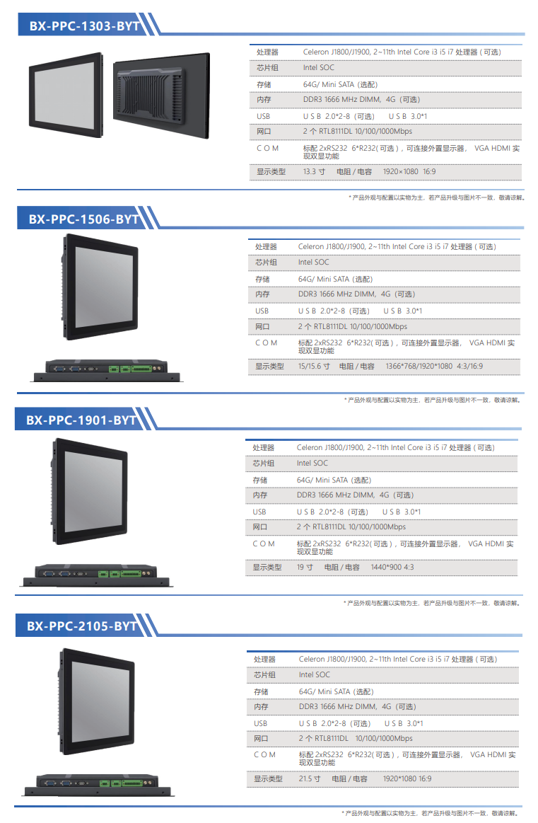 工業電腦一體機系列 BX-PPC-1***-BYT