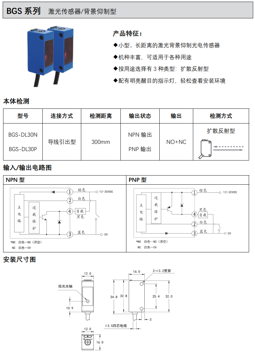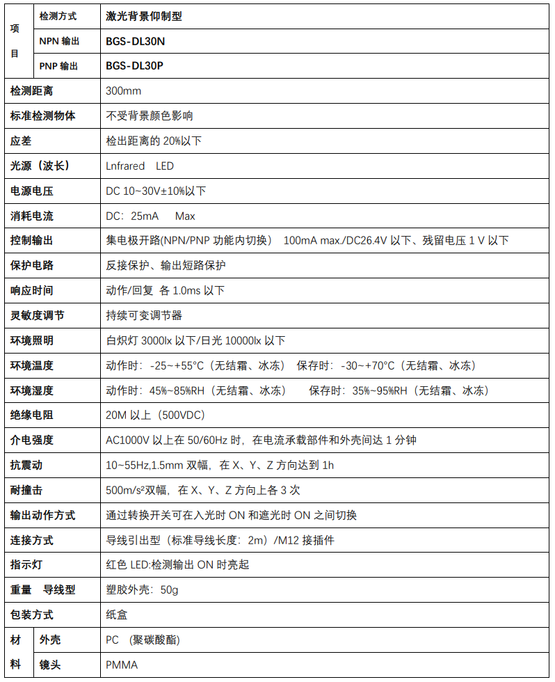 BGS-DL30N BGS-DL30P 激光傳感器/背景仰制型